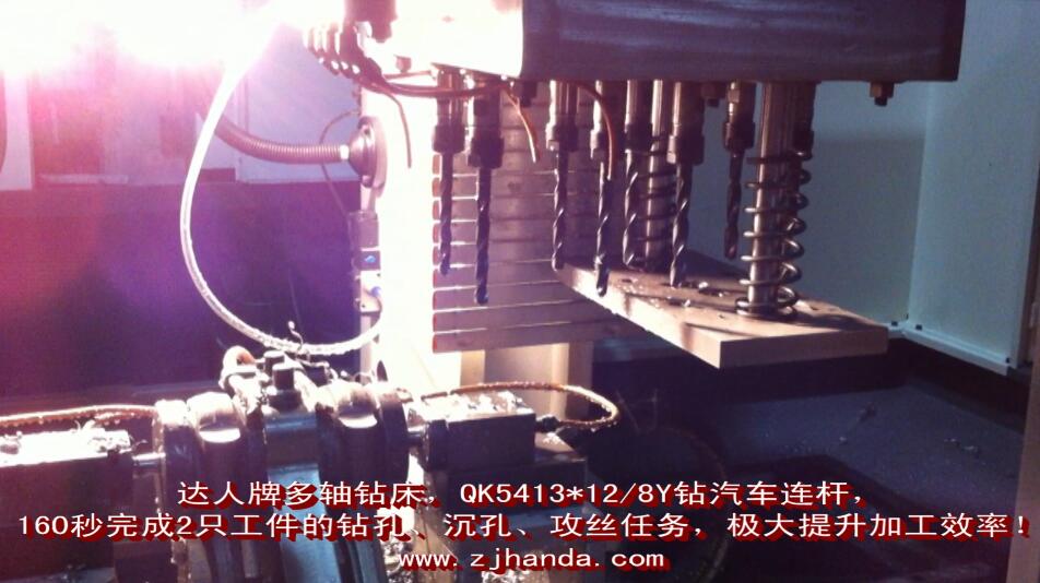 QK5413*12/8Y數控立式多軸鉆攻機床鉆汽車連桿, 160秒完成2只工件的鉆孔、沉孔、攻絲任務,極大提升加工效率!