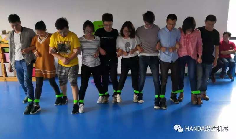 第一個項目是同心協(xié)力跑,各個部門選出10人組成一支隊伍,每兩人之間將腳用布條綁在一起奔跑,以到達(dá)終點用時的多少決出勝負(fù)。每個隊伍必須有兩名女性參與。