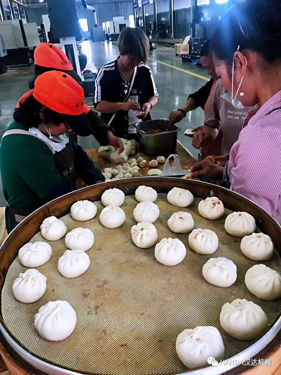 五一趣味運動會已正式落幕,領(lǐng)導(dǎo)手一揮,就帶著大伙去吃包子。車間擺放著一排排的碗筷和小菜,白色的霧氣在竹籠上彌漫,大伙剛好遇上一籠包子出爐。