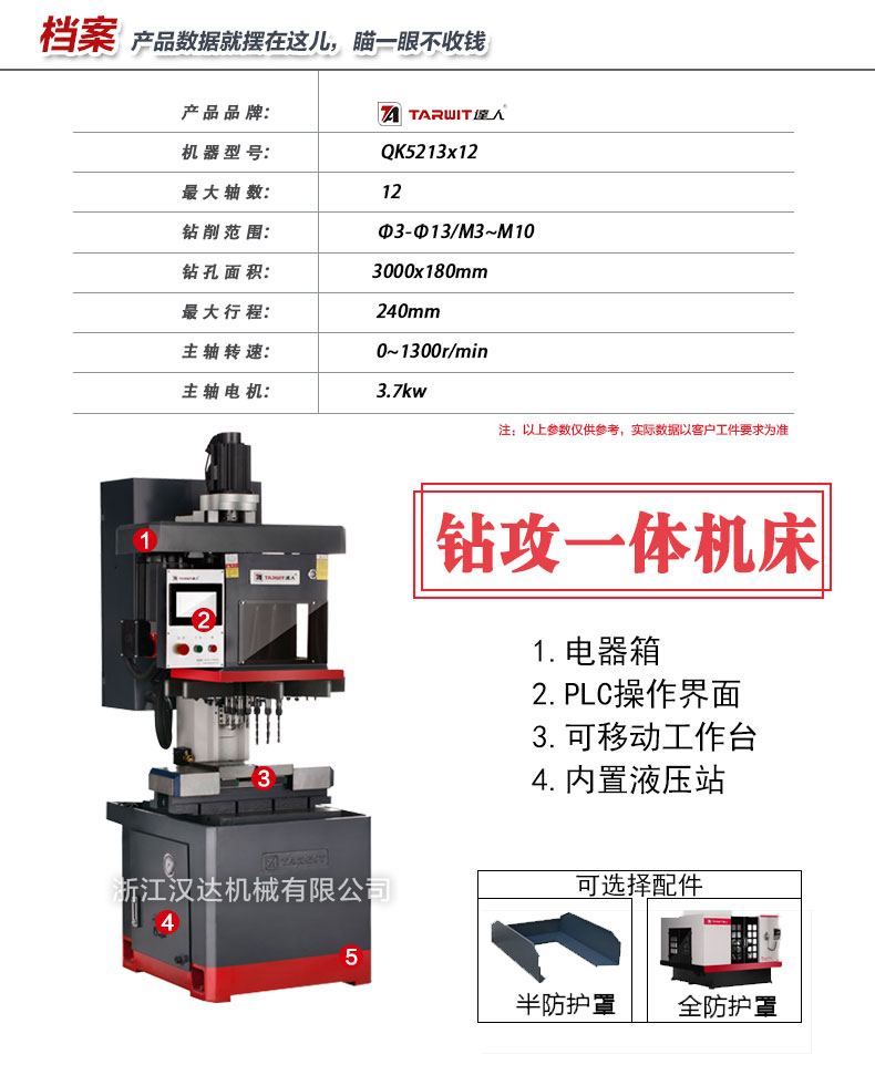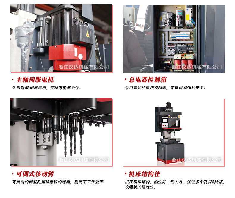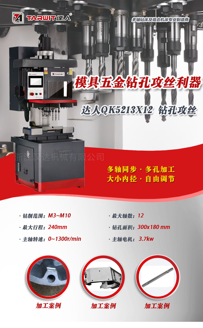 1)一次最多可以同時對6個孔進行鉆孔和攻絲,M3-M12的孔徑都可以。