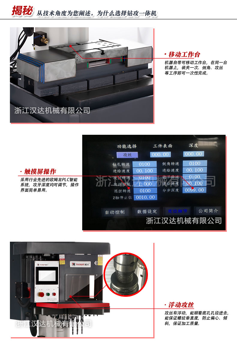 4)機床攻絲部分采用浮動攻絲,不易斷鉆頭,同孔可重復攻絲不斷牙。